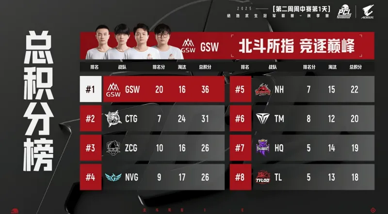 阶段6剩余6队,NH被ZCG和NVG夹击打掉。