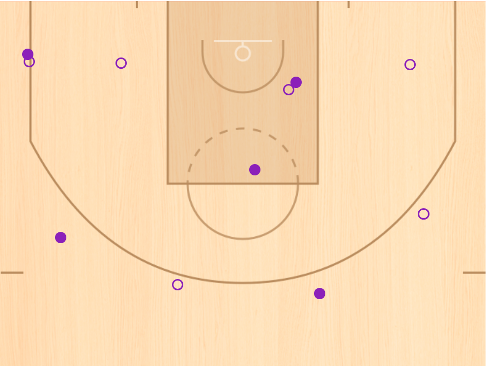 从战术地位上看,陈林坚本场比赛获得了11次出手机会,远远高于联赛中场均7.2次出手。这在一定程度上说明,当山东队能够把更多机会输送到陈林坚手中时,他是一定可以给球队带来更大帮助的。与此同时,从投篮分布上看,陈林坚本场比赛并没有过多地埋伏在底角,而是更多地提到上线接球。这才是一个核心射手的打法,也是他在福建队时更熟悉的打法。陈林坚有5次在高位的投篮,投进3球,命中率高达60%。